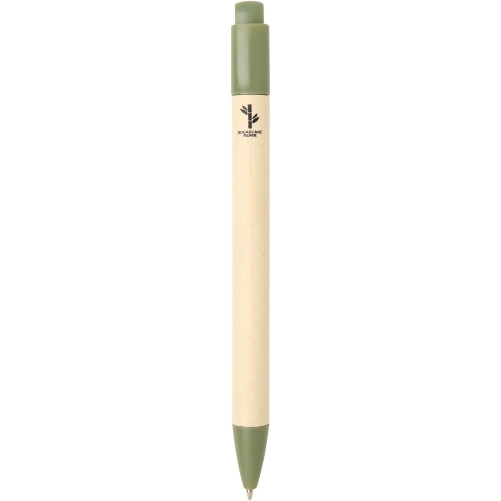 Liliana nádpapírból készült golyóstoll kék tollbetéttel, hamvaszöld