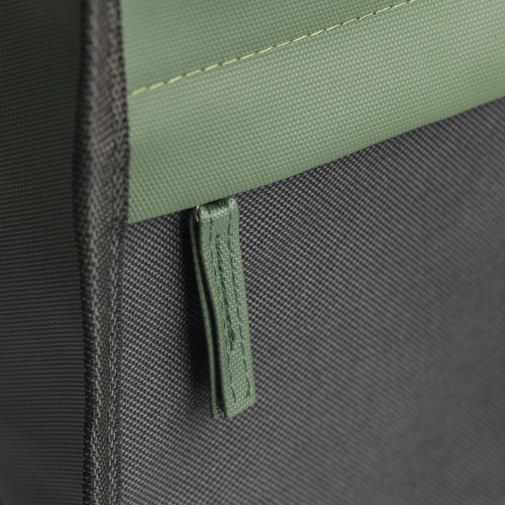 600D rPET poliészter hűtőtáska. PU bevonat teszi vízlepergetővé. Alumíniumfóliás béléssel, első cipzáras zsebbel, három tárolórésszel, hálós oldalzsebbel, tépőzáras záródással. Csatos hordozópánttal. Kapacitása 5 liter. Oldalán rPET címkével.