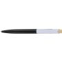 Újrahasznosított ABS-ből készült golyóstoll bambusz nyomógombbal és fehér klippel, digitális nyomtatásra alkalmas kivitelben. A tolltesten fröccsöntés során elhelyezett recycled (újrahasznosított) alapanyagra utaló logó található. Megközelítőleg 600 méter íráshosszúságú, kék színű tollbetéttel.