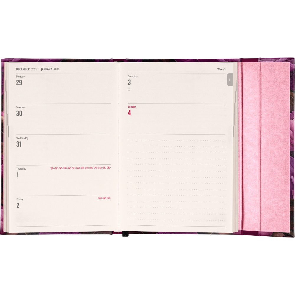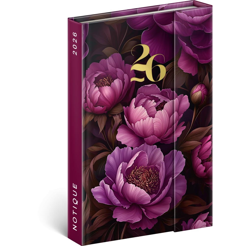 Mágnessel záródó agenda Purple Flowers 2026, 11 x 16 cm