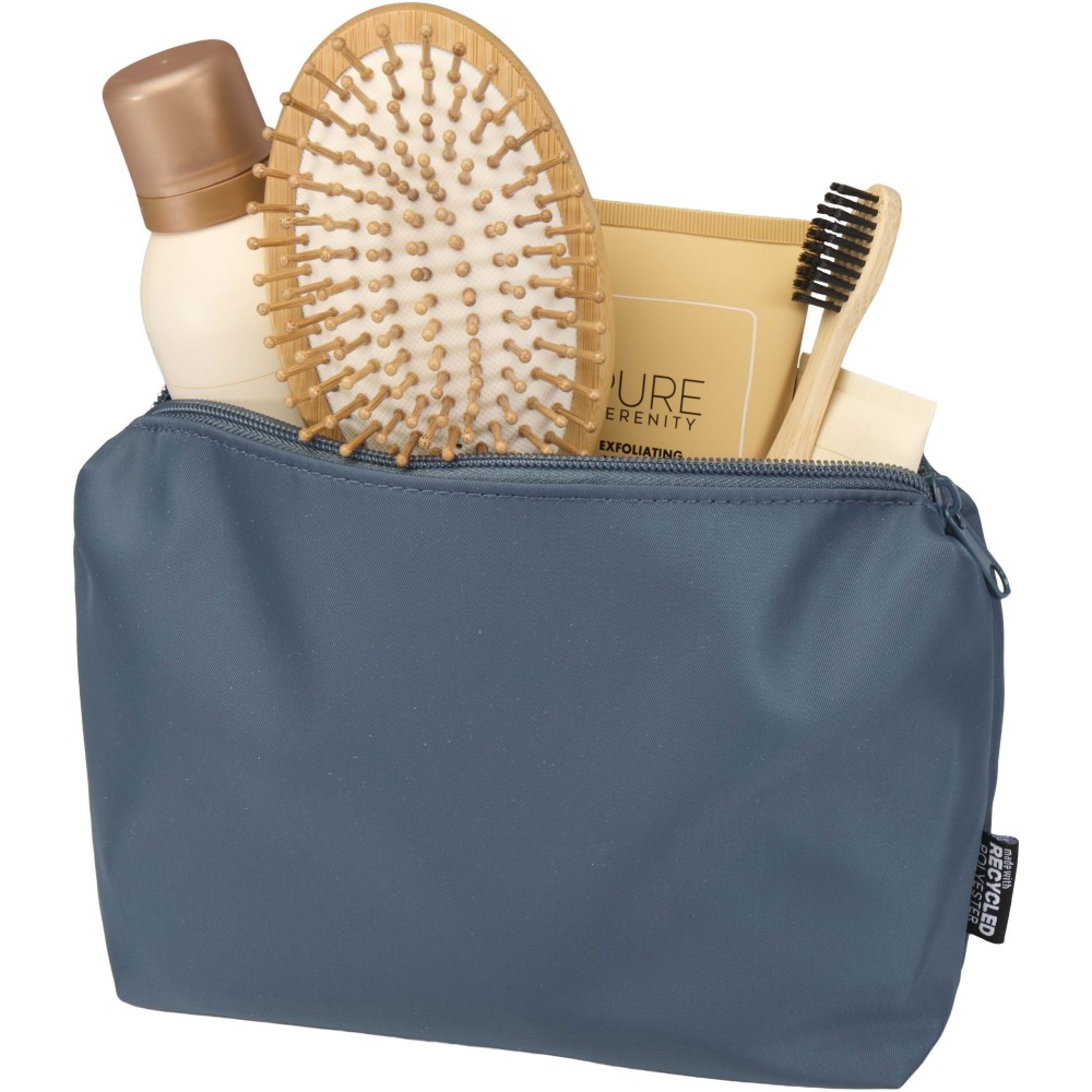 A Trip Aware® újrahasznosított utazó piperetáska kompakt és egyszerű megoldás a mindennapi alapvető holmik szállítására. Tartós 290D twill poliészterből készült, kötött hátoldallal és RPET 210D/PU béléssel, letisztult, minimalista kialakítással. Fő rekesze elegendő helyet biztosít piperecikkeknek vagy kisebb tárgyaknak, így ideális rövid utakhoz vagy útközbeni rendszerezéshez. Minden táska Aware® nyomkövetővel érkezik, amely QR-kód segítségével lehetővé teszi a termék eredetének és útjának nyomonkövetését, növelve az ellátási lánc átláthatóságát és a kapcsolatot a termék gyártási folyamatával. Űrtartalom: 2 liter.