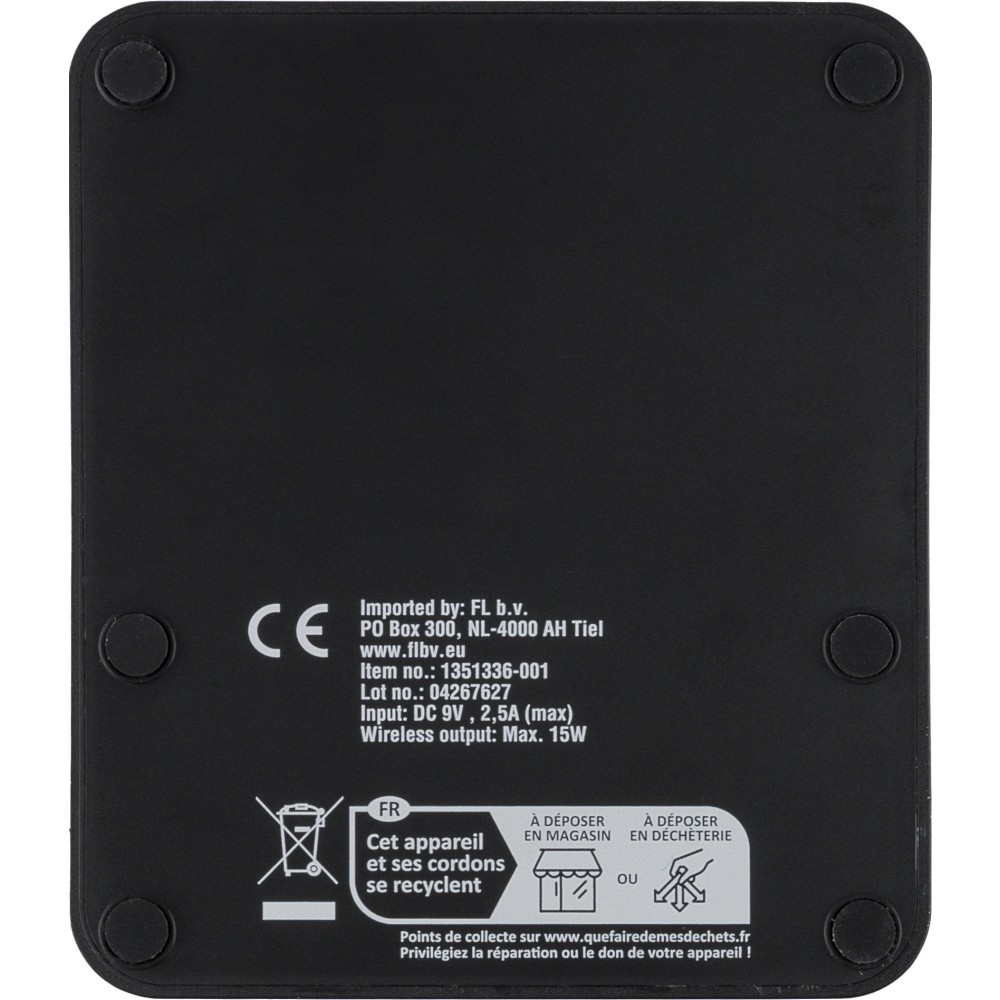 Újrahasznosított ABS-ből készült 3 az 1-ben kocka, 15W vezeték nélküli töltővel, 5W hangszóróval és telefontartó funkcióval. 5.4-es vezeték nélküli technológiával, 1200 mAh akkumulátorral, fém rácsos hangszórófelülettel és újrahasznosított PU borítású felső résszel. A terméktesten recycled (újrahasznosított) alapanyagra utaló logó található. Barna dobozba csomagolva.