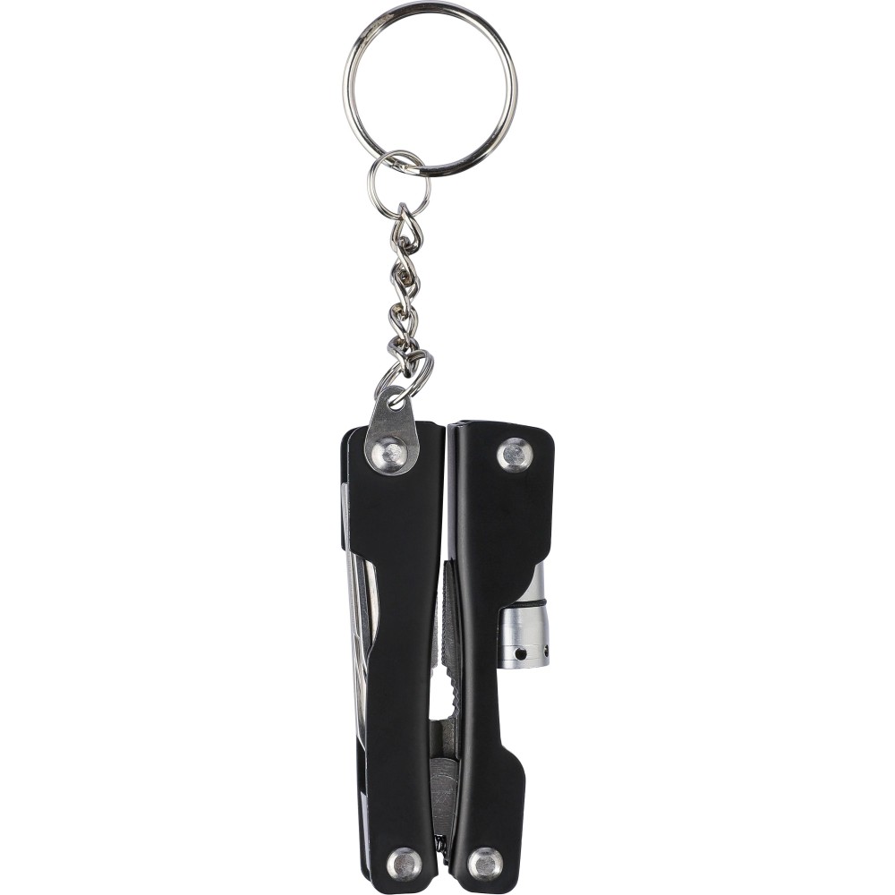 Összecsukható multifunkciós szerszám 10 funkcióval és LED zseblámpával. 600D poliészter tokban, tépőzáras záródással. A tok övre rögzíthető. Tartalmazza az elemeket. Egyenként barna kartondobozba csomagolva. Anyaga: rozsdamentes acél.