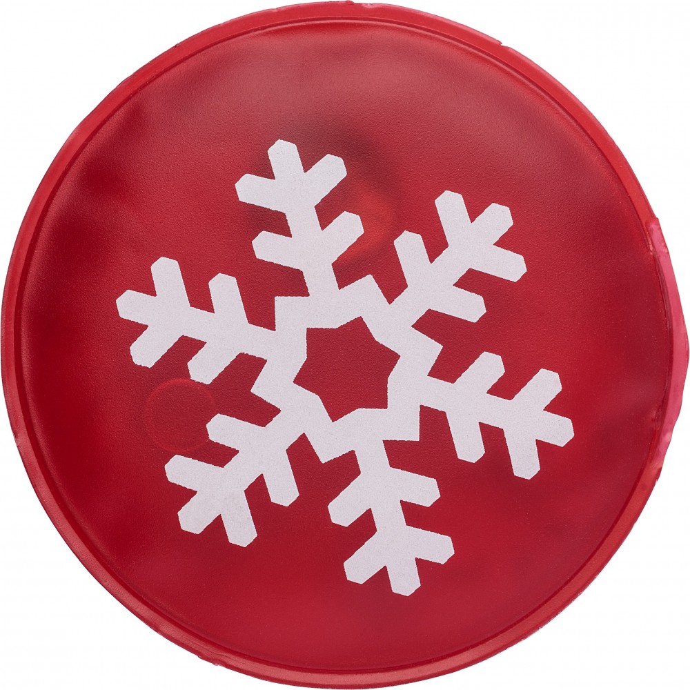Hópihe dekorációval ellátott melegítőtasak. A fémkorong többszöri megnyomásával aktiválható. Újbóli használat előtt tegyük 6-8 percre forró vízbe, amíg a tasakban lévő folyadék áttetszővé nem válik. PVC.