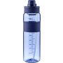 Tritán kulacs, 900 ml-es. Kétféle használati lehetőséggel: csavaros záródású kupak vagy visszahajtható végű szívószál. Szilikon markolattal, PP hordozófüllel és nyomtatott űrtartalom-jelzővel.